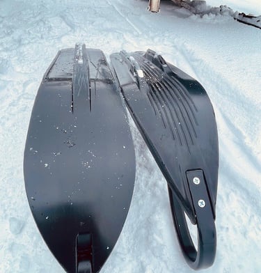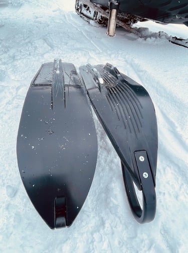 Ski Upgrade and Trade: The Trail Ready Hitch Draggin' comes with Simons Gen 3 Flexi-Skis. These high quality skis can easily be swapped out with the skis on your utility snowmobile (using the correct adapter). We found that the Flexi-Skis greatly improve turning at grooming speeds while pulling a load. The Ski Dolly will work well with just about any plastic snowmobile ski, or metal skis with plastic liners.