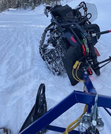 Implement Handling Challenges: Snowmobile grooming implements are heavy and difficult for operators to handle when hitching and disconnecting to snowmobiles. Implement handling becomes exponentially more difficult if the snowmobile/groomer become stuck while grooming.